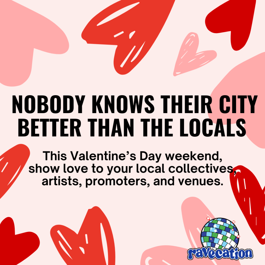 If you want to know how a city gets down, you party with the locals. This Valentine’s Day weekend, show love to your local collectives, artists, promoters, and venues. We asked ravers entrenched in the scene all around the US where they’ll be this weekend, and this is what they said 😍